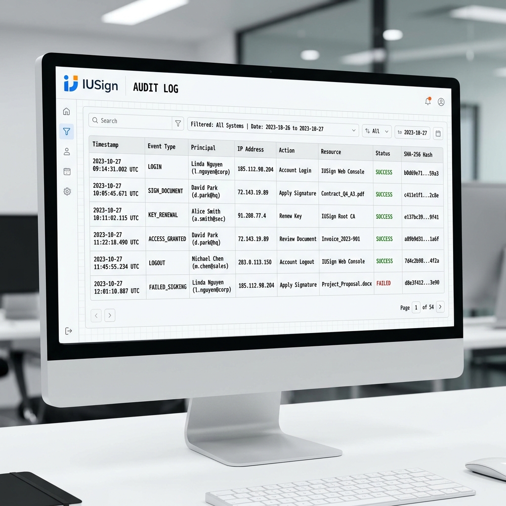 Deploy Control KeyEvery signature event — envelope created, document viewed, signature applied — is cryptographically chained. If a single record is altered, the entire chain triggers a violation.