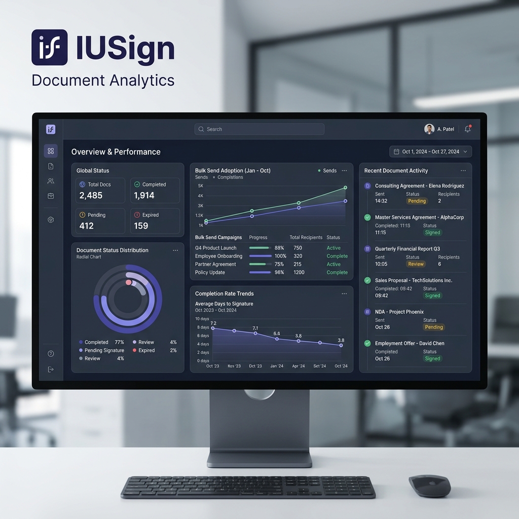 Automatically detects documents inactive for 7+ days. Status filters, manual reminders, and blocker identification.