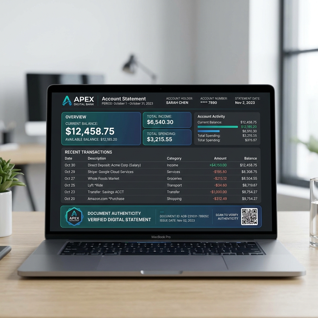 Digital statements often lack verifiable authenticity, leading to trust issues and document fraud. Authorized bank official signs once, auto-inject data, deliver to 1M+ customers.